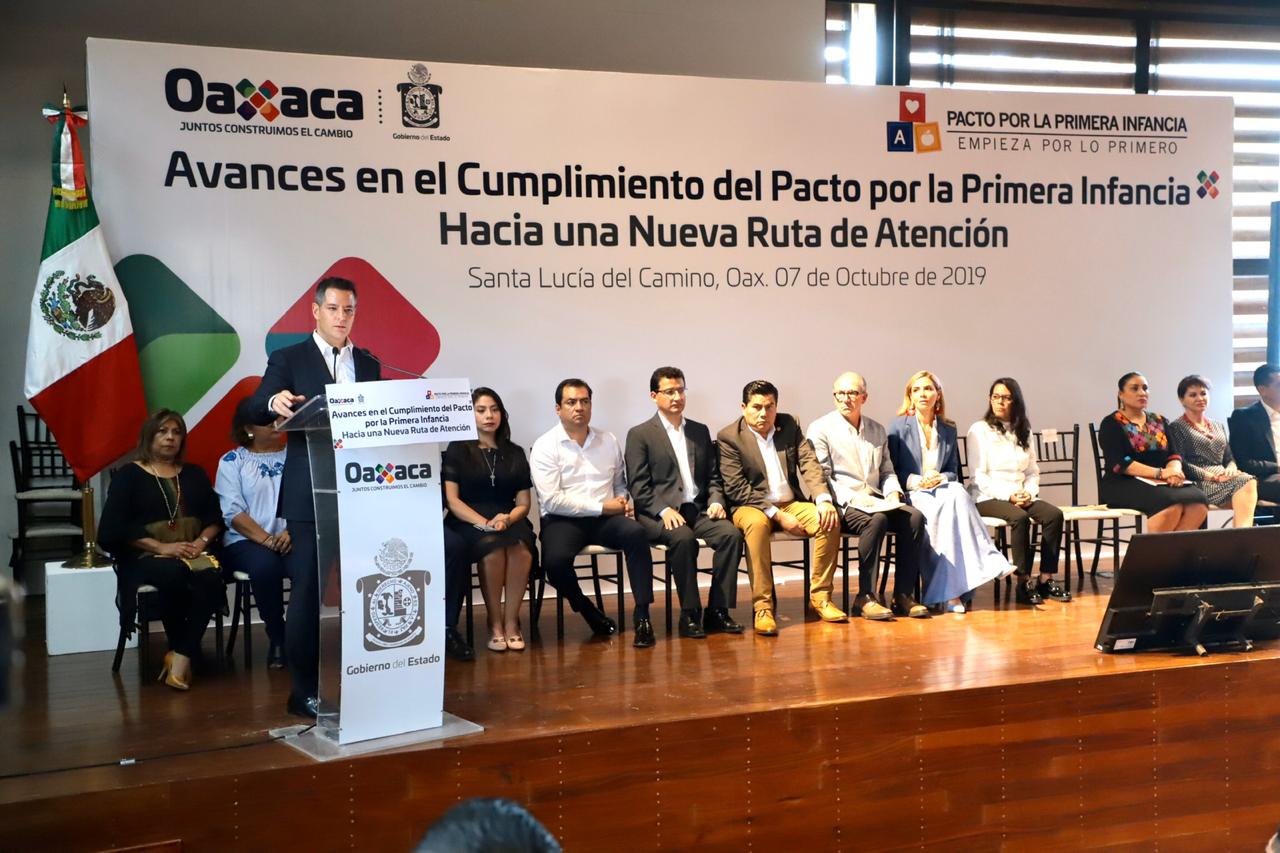 Durante la presentación del Avance del Pacto por la Primera Infancia, el Mandatario Estatal precisó que la atención que se debe brindar a las niñas y niños de 0 a 5 años de edad es un tema de convicción y compromiso que se debe impulsar, ya que este sector representa la columna vertebral de toda sociedad, entre ellas la oaxaqueña.