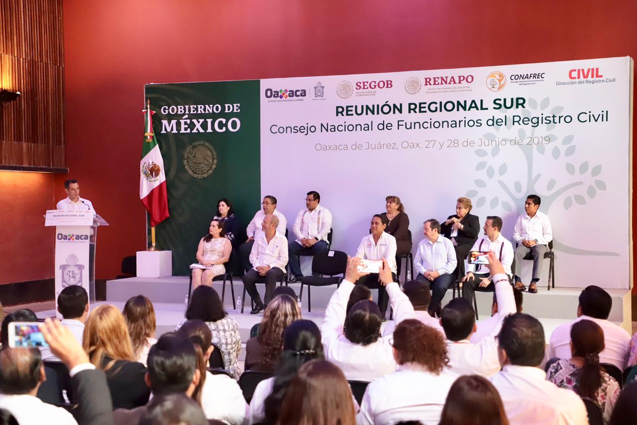 Fortalecer las políticas registrales para garantizar el derecho a la identidad y estado civil de las personas en México son los objetivos de la reunión del Consejo Nacional de Funcionarios del Registro Civil (Conafrec) 2019, de la región Sur-Sureste del país, la cual fue inaugurada por el gobernador Alejandro Murat Hinojosa en el Centro Cultural y de Convenciones de Oaxaca.