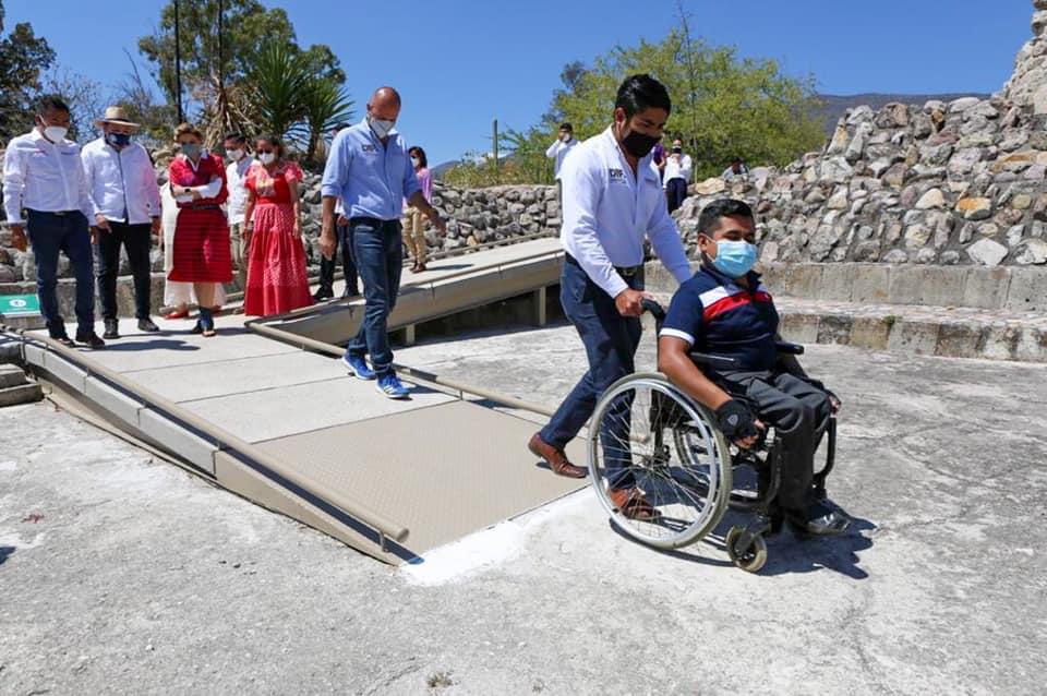 Al contar con los dos únicos sitios arqueológicos en México, Monte Albán, espacio incluyente inaugurado el 3 de diciembre del 2019 y Mitla, puesto en marcha por Ivette Morán de Murat, esposa del gobernador del estado, Oaxaca se coloca a la vanguardia en los temas de inclusión social, y accesibilidad turística.