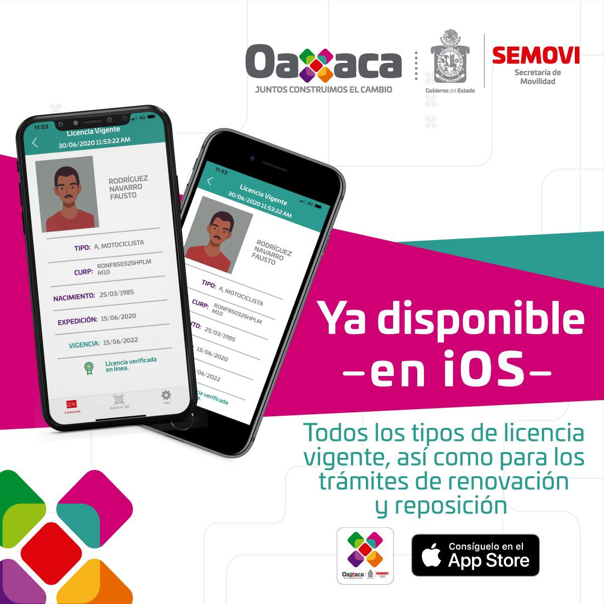 Con el lanzamiento de la aplicación “Emisión de Licencias Digital”, disponible para el sistema operativo IOS, el Gobierno del Estado de Oaxaca a través de la Secretaría de Movilidad (Semovi) continúa en la ruta de la modernización de los diferentes trámites y servicios que se ofrecen a las y los ciudadanos.