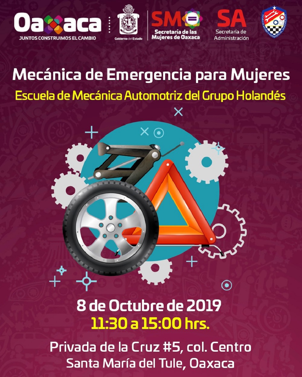 Esta capacitación con perspectiva de género, que arrancará el próximo 8 de octubre, será impartida por profesores de la Escuela Superior de Mecánica Automotriz “Grupo Holandés”, en un horario de 11:30 a 15:00 horas.