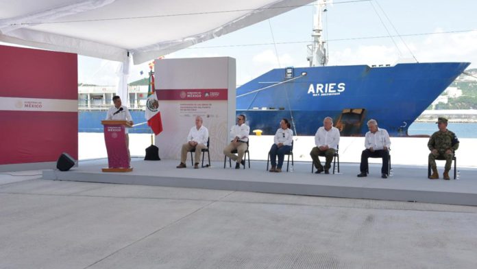 Murat Hinojosa refirió que la construcción de esta infraestructura en los que se invirtieron 124 millones de pesos, comprende 137 metros de ampliación, además que es la primera de muchas acciones que tendrá este lugar para el desarrollo del puerto petrolero y comercial que contempla el proyecto.