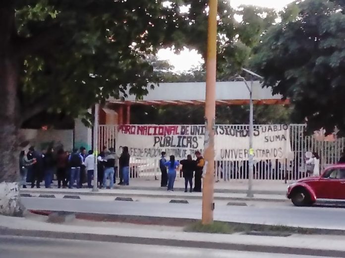 Desde muy temprano cerraron la Universidad Autónoma Benito Juárez de Oaxaca (UABJO) para exigirle al gobierno federal solución a la crisis financiera que enfrentan las Universidades Públicas Estatales (UPE’S) en donde se incluye a la UABJO.