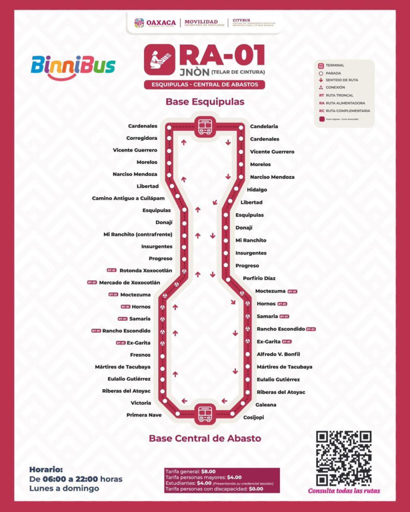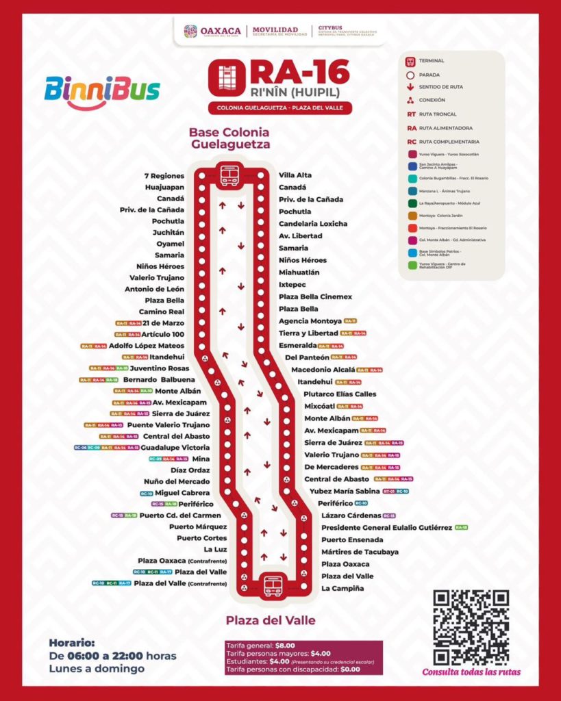 Las nuevas líneas son la RA-01 “Jnòn”, que en amuzgo de San Pedro Amuzgos significa telar de cintura, y conecta Esquipulas con la Central de Abasto; la RA-16 “Ri’nîn”, que en lengua triqui de San Andrés Chicahuaxtla se traduce como huipil, la cual enlaza la colonia Guelaguetza con Plaza del Valle.