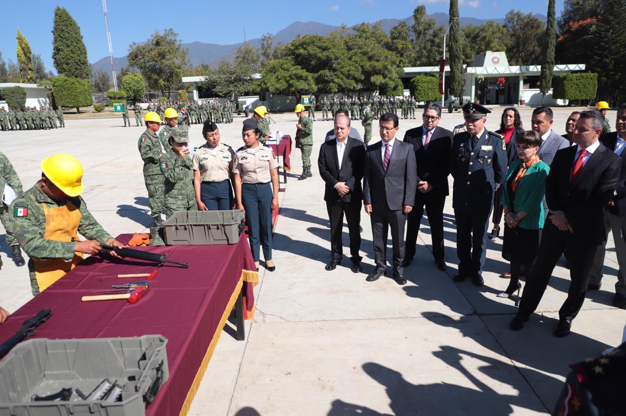 Por un Oaxaca más seguro, este martes se llevó a cabo la destrucción de 759 armas aseguradas por las Fuerzas Armadas y las instituciones de seguridad pública de los tres niveles de gobierno, a través de diversos operativos conjuntos.