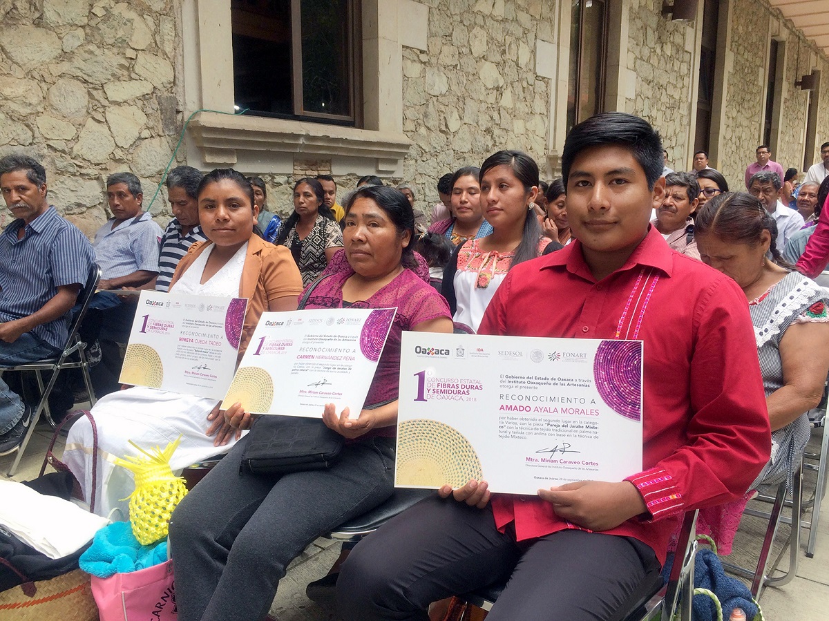 El Gobierno del Estado de Oaxaca a través del Instituto Oaxaqueño de las Artesanías (IOA) premió a 12 artesanos ganadores del Primer Concurso Estatal de Fibras Duras y Semiduras de Oaxaca 2018.