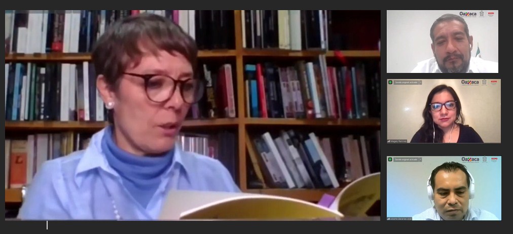 A invitación del Instituto Estatal de Educación Pública de Oaxaca (IEEPO), y como parte de las actividades impulsadas por el gobernador Alejandro Murat Hinojosa y el director general Francisco Ángel Villarreal, para fortalecer el desempeño profesional del magisterio, la fundadora del colectivo cultural Colorines Educación, impartió en la modalidad a distancia la charla “Lectura en voz alta y tertulias en aulas virtuales y presenciales”.