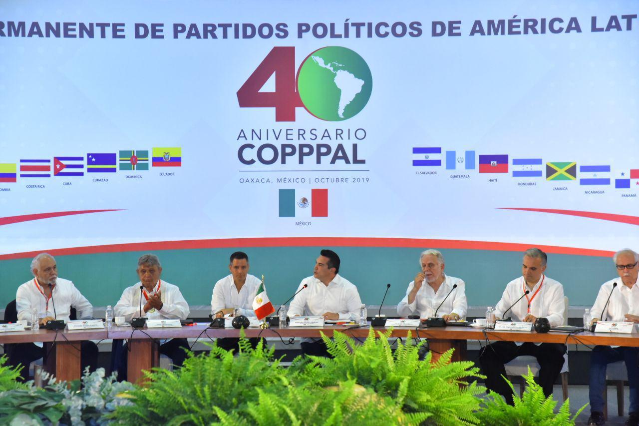 Al citar a Gustavo Carvajal Moreno, quien en 1979 convocó en Oaxaca a los partidos progresistas del hemisferio a conformar a la COPPPAL, el Presidente del CEN del PRI destacó que sólo los partidos políticos pueden promover y consolidar un movimiento transformador e impulsar políticas públicas innovadoras para fortalecer el cambio democrático.