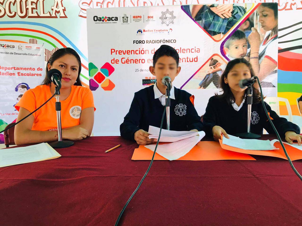 El Instituto Estatal de Educación Pública de Oaxaca (IEEPO), llevó a cabo el Primer Foro Radiofónico “La Prevención de la Violencia de Género en la Juventud”, en la Escuela Secundaria Técnica número 108, con la asistencia de 600 alumnos y alumnas, quienes tuvieron la oportunidad de ampliar sus conocimientos y resolver dudas sobre este tema.