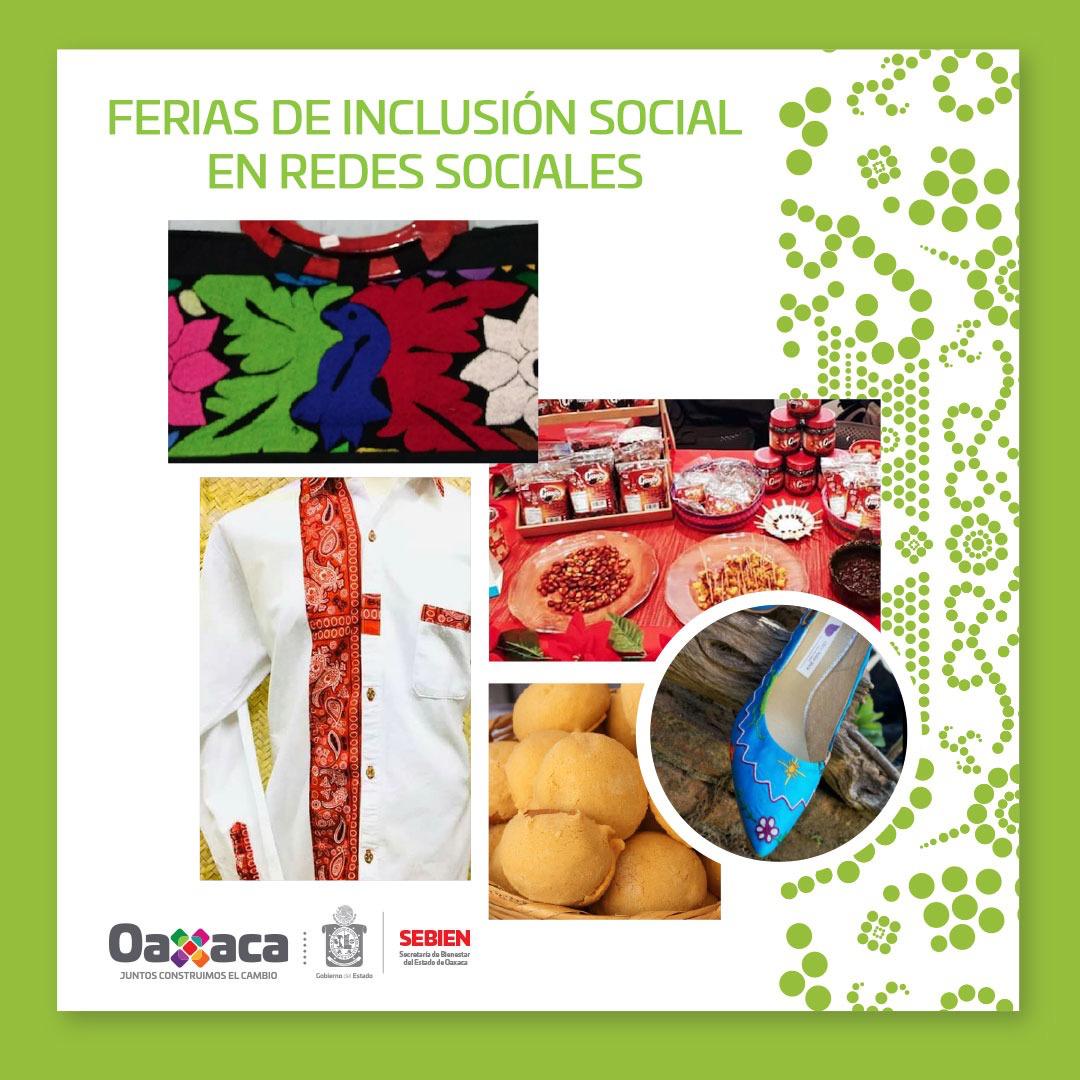 Con el firme compromiso de trabajar para impulsar el Bienestar para Oaxaca, la Feria de Inclusión Social virtual busca que por medio de la difusión de los artículos en las redes sociales, las y los integrantes del padrón de beneficiarios de la Sebien , puedan tener la oportunidad de comercializarlos de forma directa.
