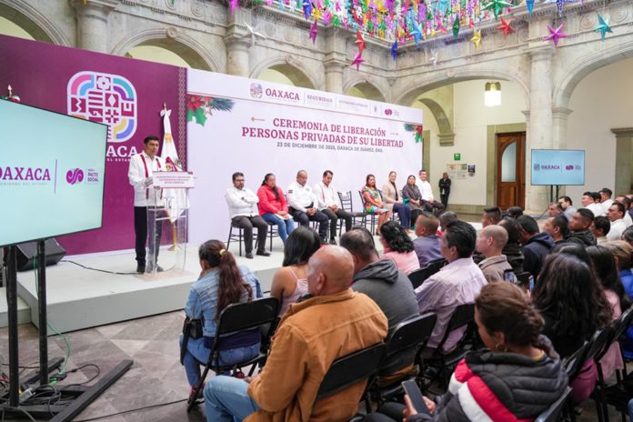 “En Oaxaca creemos en una justicia social que no castiga, sino que escucha a nuestros pueblos y comunidades, entendiendo que la reinserción social es un camino que es posible cuando se garantizan los derechos de todas y todos”, dijo en la ceremonia realizada en Palacio de Gobierno.