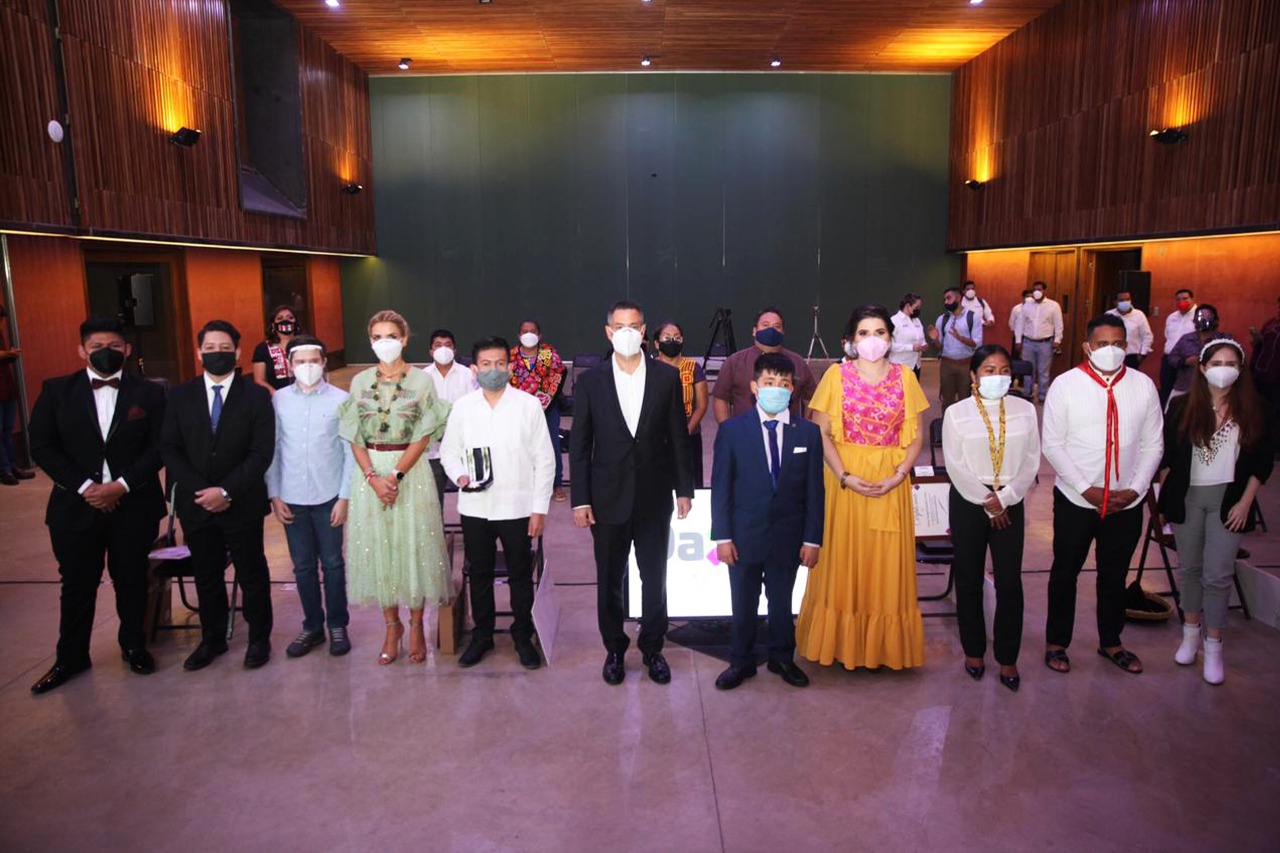 En reconocimiento al talento, trabajo y compromiso con el desarrollo de Oaxaca, el gobernador Alejandro Murat Hinojosa y la presidenta honoraria del Sistema DIF Oaxaca, Ivette Morán de Murat, entregaron este martes el Premio Estatal de la Juventud 2020 a seis oaxaqueños destacados en actividades Académicas, Productivas, Artísticas, Labor social, Protección al ambiente y Mérito cívico.