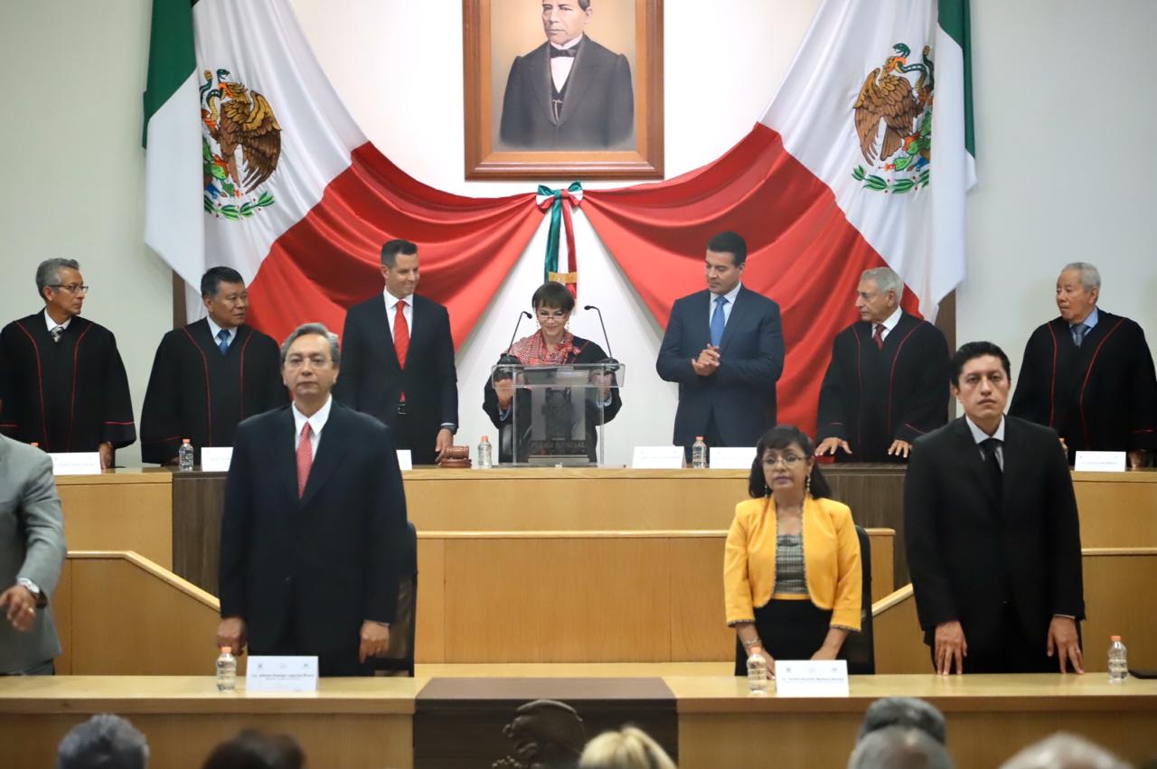 Durante el mensaje de su informe de actividades, Villanueva Abraján subrayó el interés del mandatario Alejandro Murat para que el estado cuente con un modelo de impartición de justicia sólido, vanguardista y eficaz.