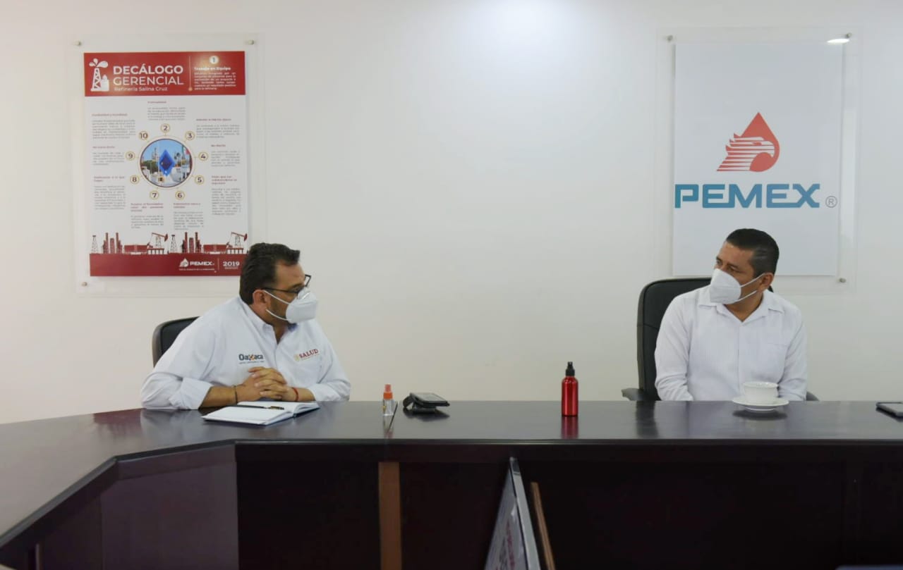 Para reforzar las acciones de prevención de contagios de COVID-19 en centros de trabajo esenciales de este Puerto, como la industria de hidrocarburos, el secretario de Salud, Donato Casas Escamilla, se reunió con el presidente municipal, Juan Carlos Atecas Altamirano, así como con directivos y representantes sindicales de la refinería “Antonio Dovalí Jaime”.