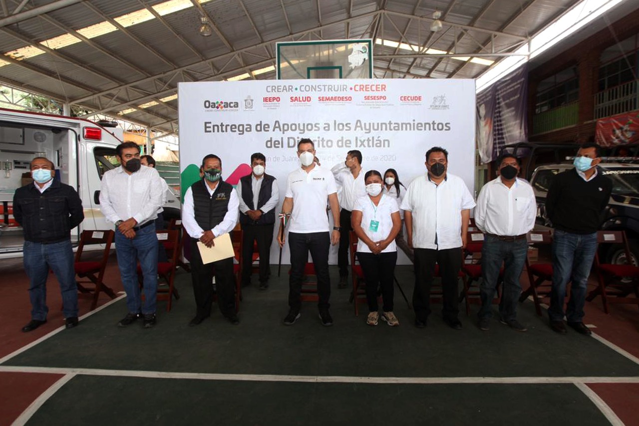 Reunidos en la explanada municipal de Ixtlán de Juárez, el Jefe del Poder Ejecutivo del Estado entregó una ambulancia equipada, que beneficiará a las y los habitantes de los 26 municipios que conforman la ULADI para la atención y traslado de pacientes a las unidades médicas más cercanas. Esta unidad requirió una inversión de 1.35 millones de pesos, cuenta con reanimadores reusables, tanques de oxígeno portátil y fijo, equipo portátil para succión rápida, entre otros equipamientos.
