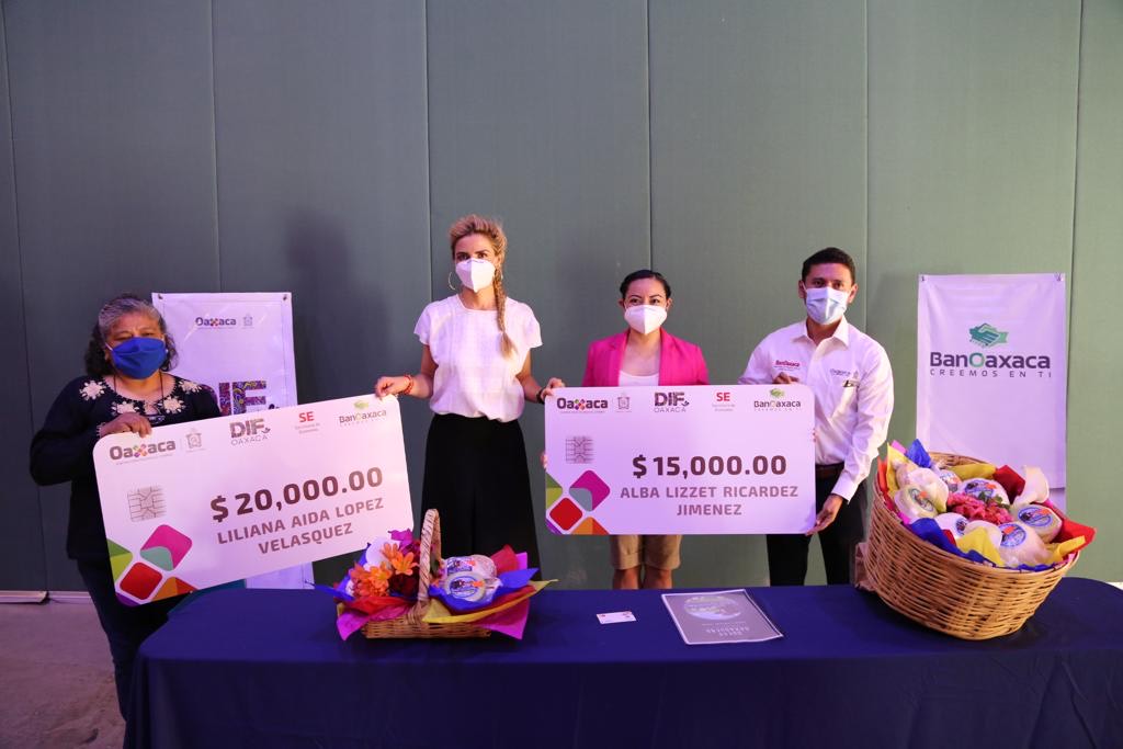 Una de estas acciones, es la asignación de créditos a través de BanOaxaca, por tal motivo, Ivette Morán de Murat, presidenta honoraria del Sistema para el Desarrollo Integral de la Familia (DIF) Oaxaca, en compañía de Igmar Medina Matus, titular de BanOaxaca, entregaron diversos créditos a mujeres emprendedoras.