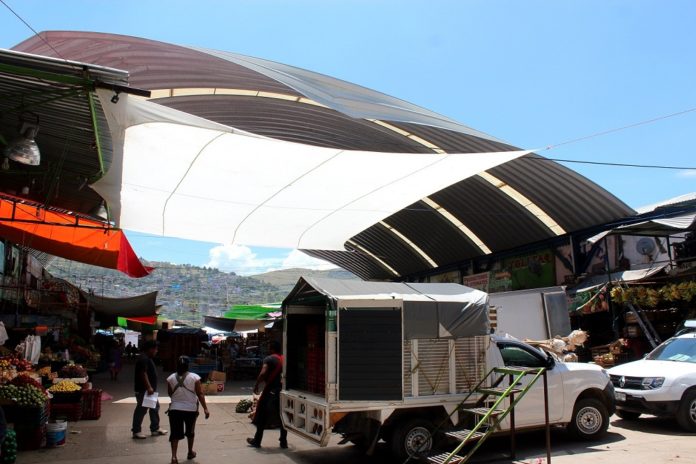 El Ayuntamiento de Oaxaca de Juárez, a través de la Dirección de Servicios Municipales, la Coordinación Ejecutiva del Mercado de Abasto y la Subdirección de Protección Civil, realizó trabajos durante la madrugada de este martes para retirar la techumbre afectada, a causa de la lluvia y fuertes vientos del pasado domingo, en la Nave 3 de bodegas de frutas.