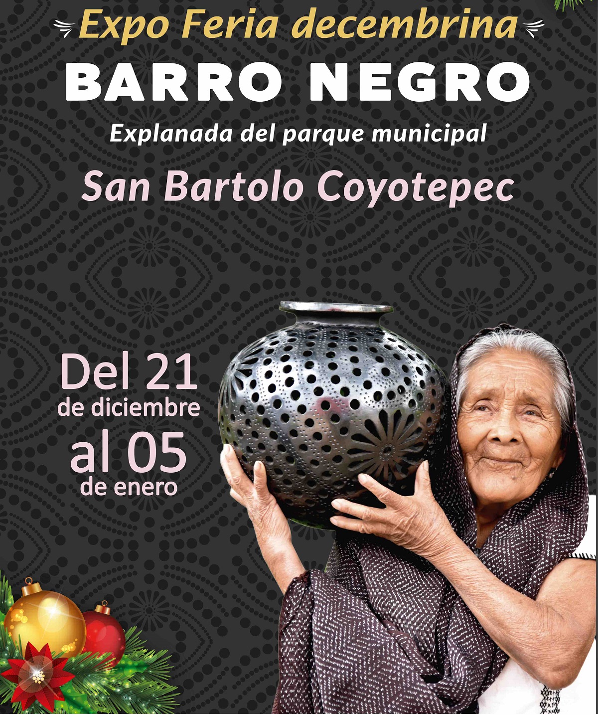Como cada año, para celebrar la temporada navideña, el municipio de San Bartolo Coyotepec realizará su Expo Feria Decembrina del Barro Negro 2019, que se llevará del 21 de diciembre al 5 de enero del 2020.