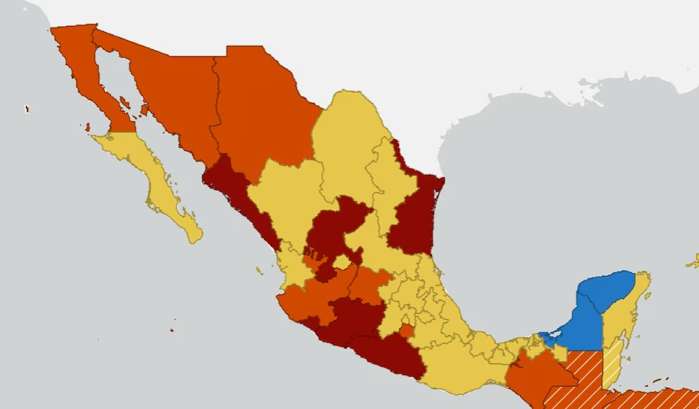 - Nivel 3, Reconsidere viajar: Chiapas, Morelos, Guanajuato, Jalisco, Chihuahua, Sonora y Baja California.