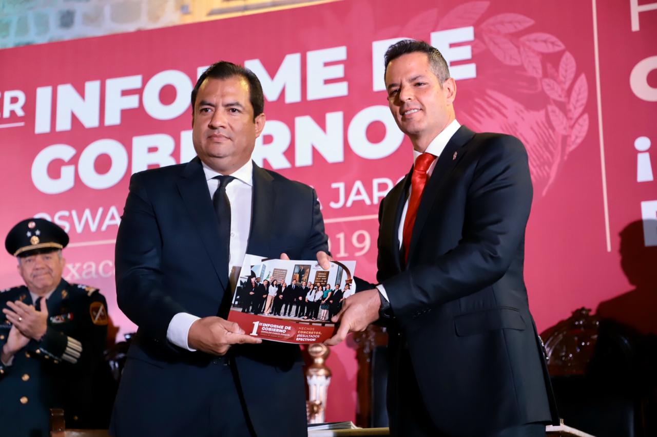- El Mandatario Estatal asistió al Primer Informe de Gobierno del presidente municipal de Oaxaca de Juárez, Oswaldo García Jarquín