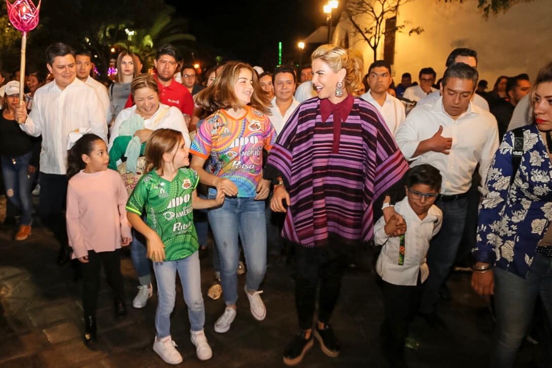 Continuando con las actividades entorno a las fiestas decembrinas el Gobernador del Estado, Alejandro Murat Hinojosa y su esposa la señora Ivette Morán de Murat, en compañía de Patricia Benfield presidenta DIF municipal de Oaxaca de Juárez, así como de funcionarios del gabinete social, encabezaron la Mega Calenda, la cual inició en la emblemática fuente de las 8 regiones y finalizó con la Gran Posada Navideña en inmediaciones del parque Paseo Juárez “El Llano”.
