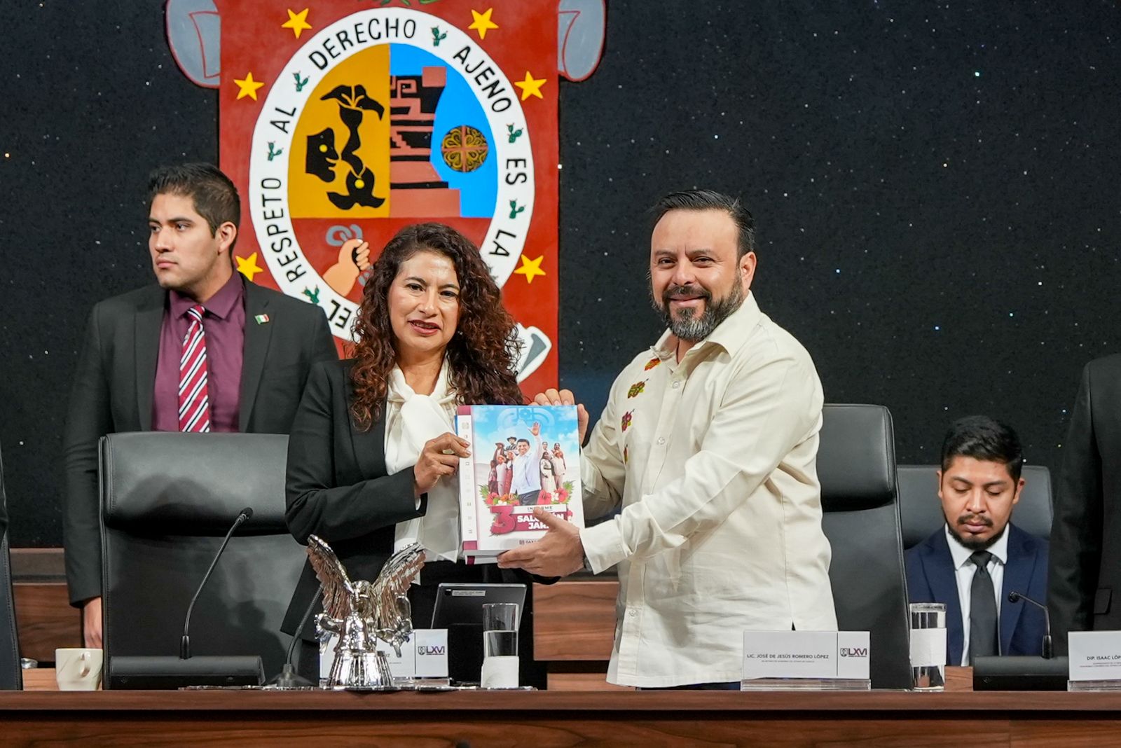 Al cumplirse tres años de la administración que encabeza el gobernador Salomón Jara Cruz, este lunes, en su representación, el titular de la Secretaría de Gobierno, Jesús Romero López, entregó el Tercer Informe de Gobierno, ante el pleno del H. Congreso del Estado de Oaxaca.