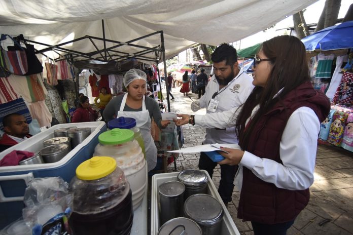 Karina Juárez Galindo, jefa del Departamento de Inspección Sanitaria, mencionó que para brindarle un mejor servicio a los turistas y a las personas que acuden al lugar, se verificó que los más de 130 puestos fijos y semifijos que venden productos alimenticios cumplan con los requisitos sanitarios mínimos para poder expender los alimentos.