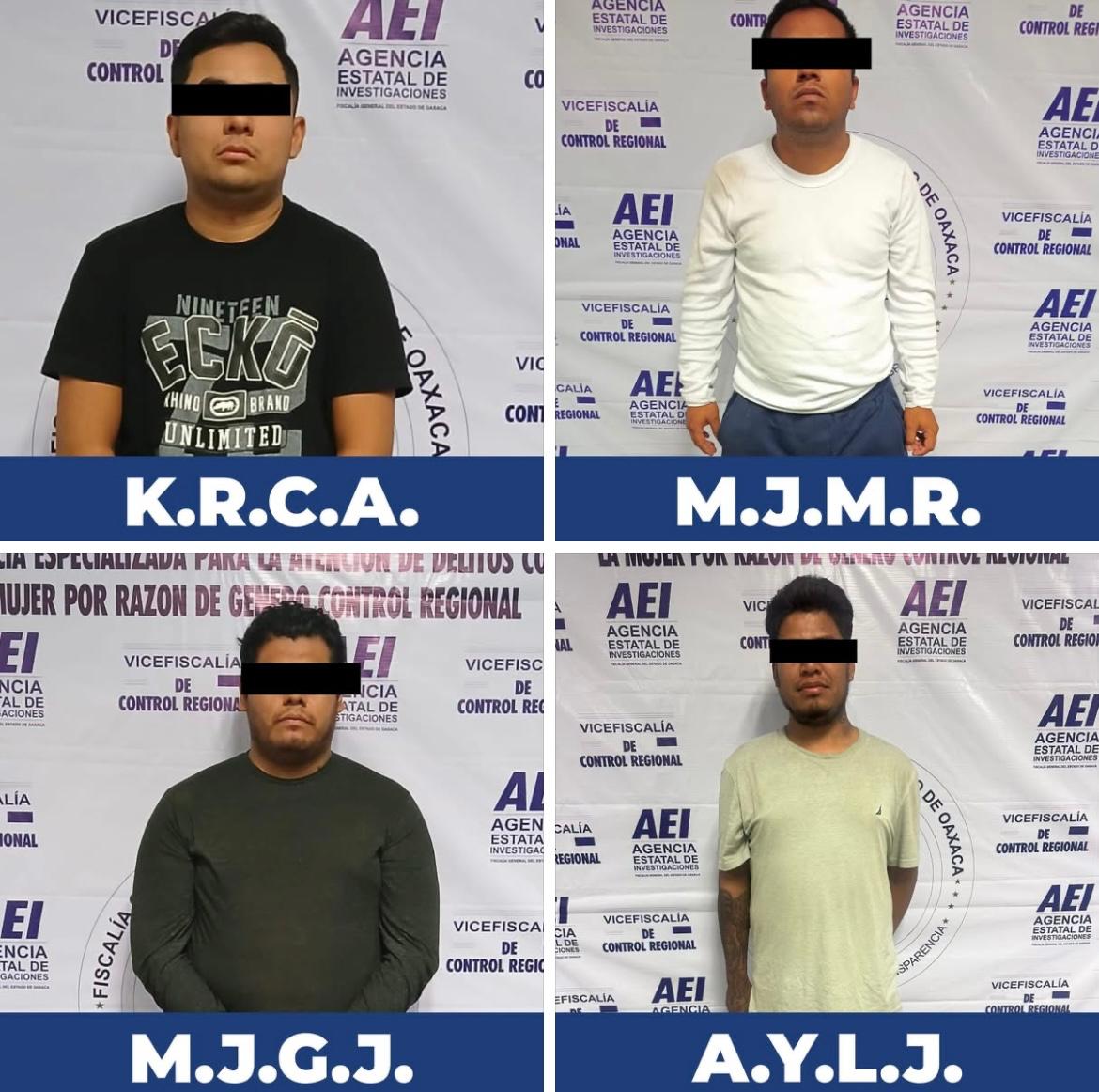 La Fiscalía General del Estado de Oaxaca (FGEO) obtuvo prisión y auto de vinculación a proceso en contra de cuatro personas del sexo masculino identificadas como A.Y.L.J., M.J.M.R., M.J.G.J., y K.R.C.A., imputados por el delito de extorsión en perjuicio patrimonial de E.C.H.C., en hechos ocurridos en los Valles Centrales.